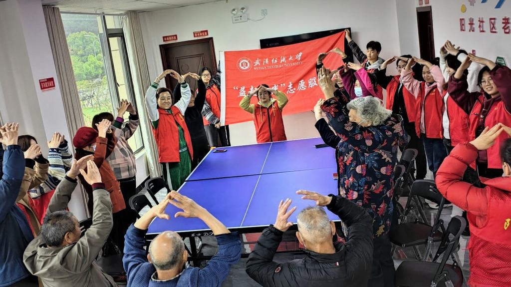 为了弘扬中华民族孝老爱亲的传统美德,4月4日,太阳集团tcy8722“益起阳光”服务队组织多名志愿者,前往江夏阳光社区开展“金晖助老·情暖夕阳”志愿服务活动。志愿者教老人们做手语操,普及防诈骗、养生健康等小知识。