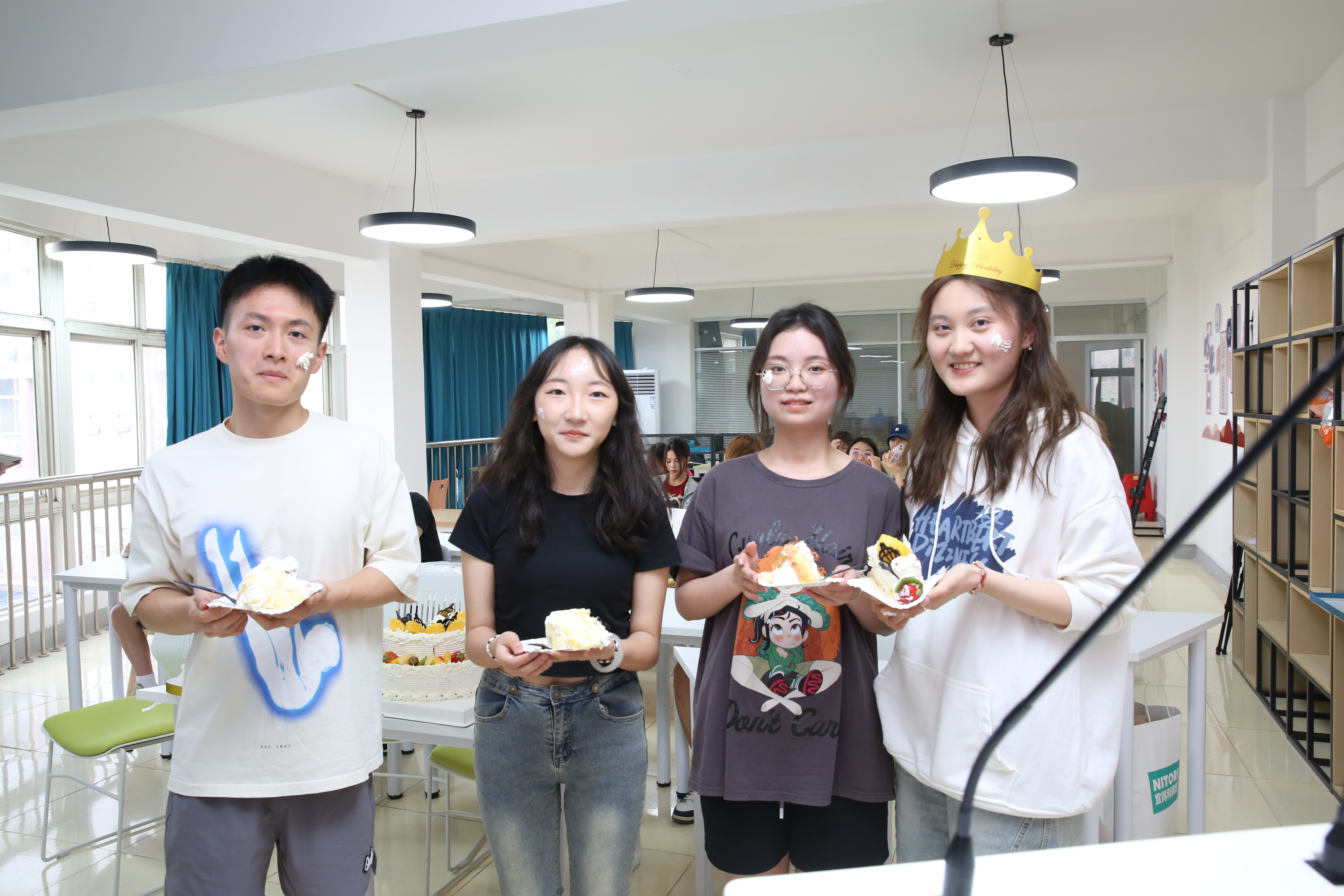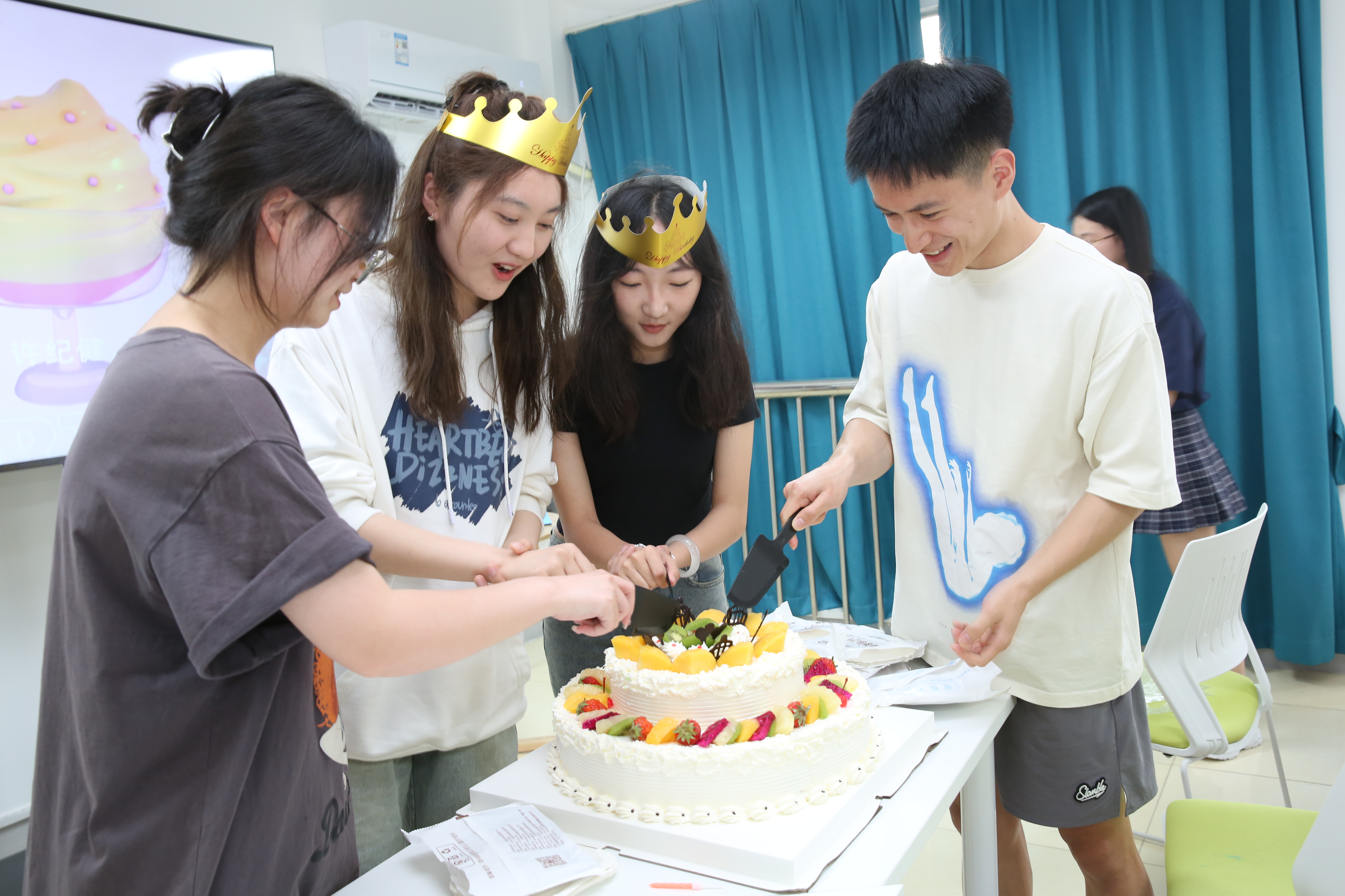 “祝你生日快乐,happy birthday to you!”大家为过生日的员工齐声唱起生日歌,同学们一起吹蜡烛、许愿和拍照。在热烈的掌声与祝贺中,“寿星”们为大家切分蛋糕,共同分享今天的快乐。