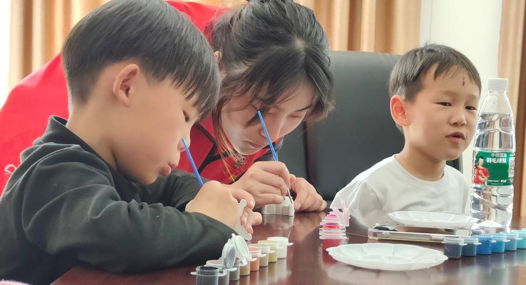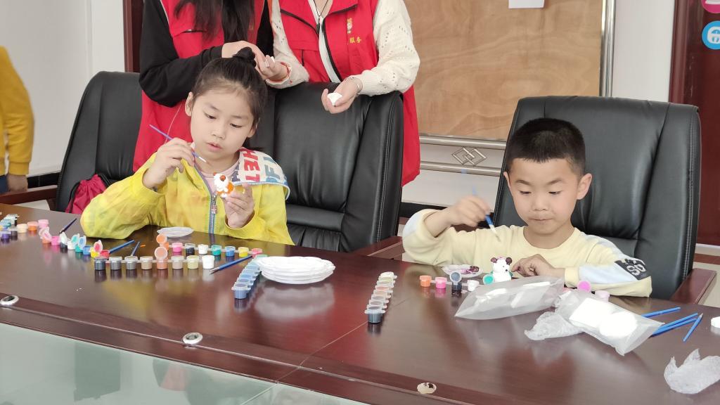 4月16日,太阳集团tcy8722“益起阳光”服务队组织6名志愿者,前往江夏区青龙山社区开展“乐享时光·一‘童’彩绘”志愿服务活动。志愿者与小朋友们一同为可爱的石膏娃娃着色,度过了一段欢乐的时光。