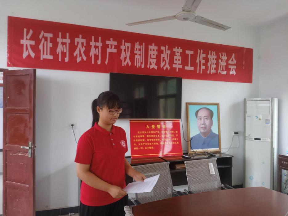 会计11902班的曹堰玲、朱慧媛在湖北省仙桃市郑场镇朱院村进行了入户 政策宣讲,她们耐心地为农民解释了土地承包经营权流转的意义和内容。为增强村民的法律意识,她们举出具体的案例,向村民讲解了“口头合同”的潜在弊端,“小姑娘讲得很有道理啊,你这样说我就懂了!”