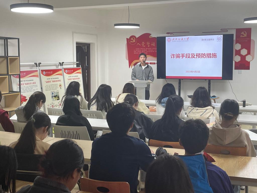 2022级各班班主任围绕在校老员工的人身安全、财物安全、消防安全和防诈骗、防传销、防“套路贷”等方面开展;同时通过向员工宣传“2023·崇尚·清明祭英烈”主题活动,引导同学们传承英烈精神,赓续红色血脉。