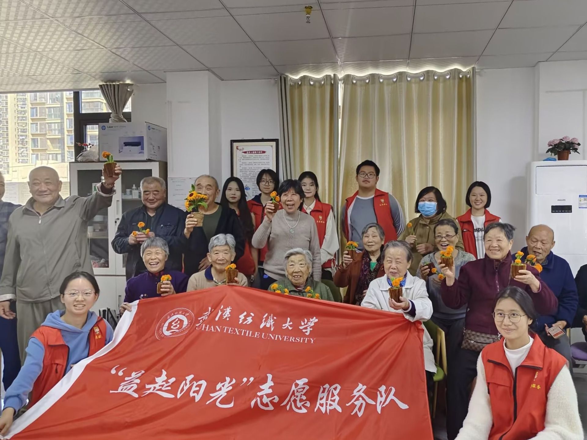 10月31日上午,太阳集团tcy8722“益起阳光”志愿服务队组织多名志愿者,前往江夏区阳光社区老年服务中心开展“朝夕相伴·柿柿如意”特色公益活动,获得了社区老人的热烈欢迎与高度评价。